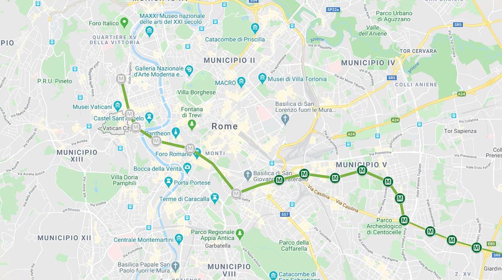 Vai alla mappa interattiva completa delle linee della Metro di Roma